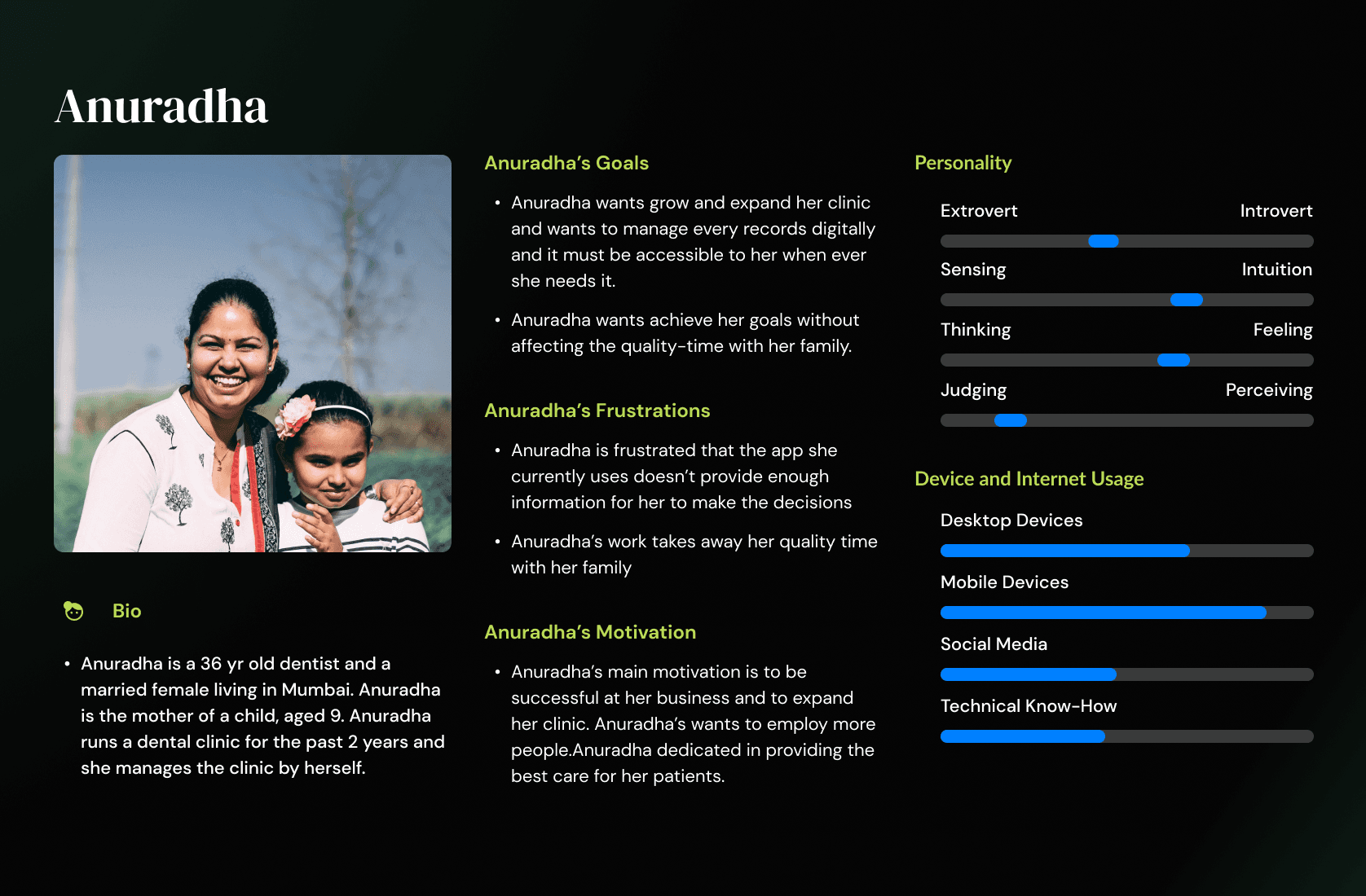 Based on the research, I was able to develop User Personas for our target users.